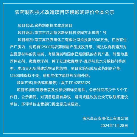 定將現(xiàn)有項(xiàng)目整體搬遷至江蘇省如東沿海經(jīng)濟(jì)開(kāi)發(fā)區(qū)。搬遷完成后,將形成年產(chǎn)1000噸戊唑醇、200噸吡丙醚、500噸噻蟲(chóng)啉、200噸環(huán)丙唑醇原藥的生產(chǎn)規(guī)模... |